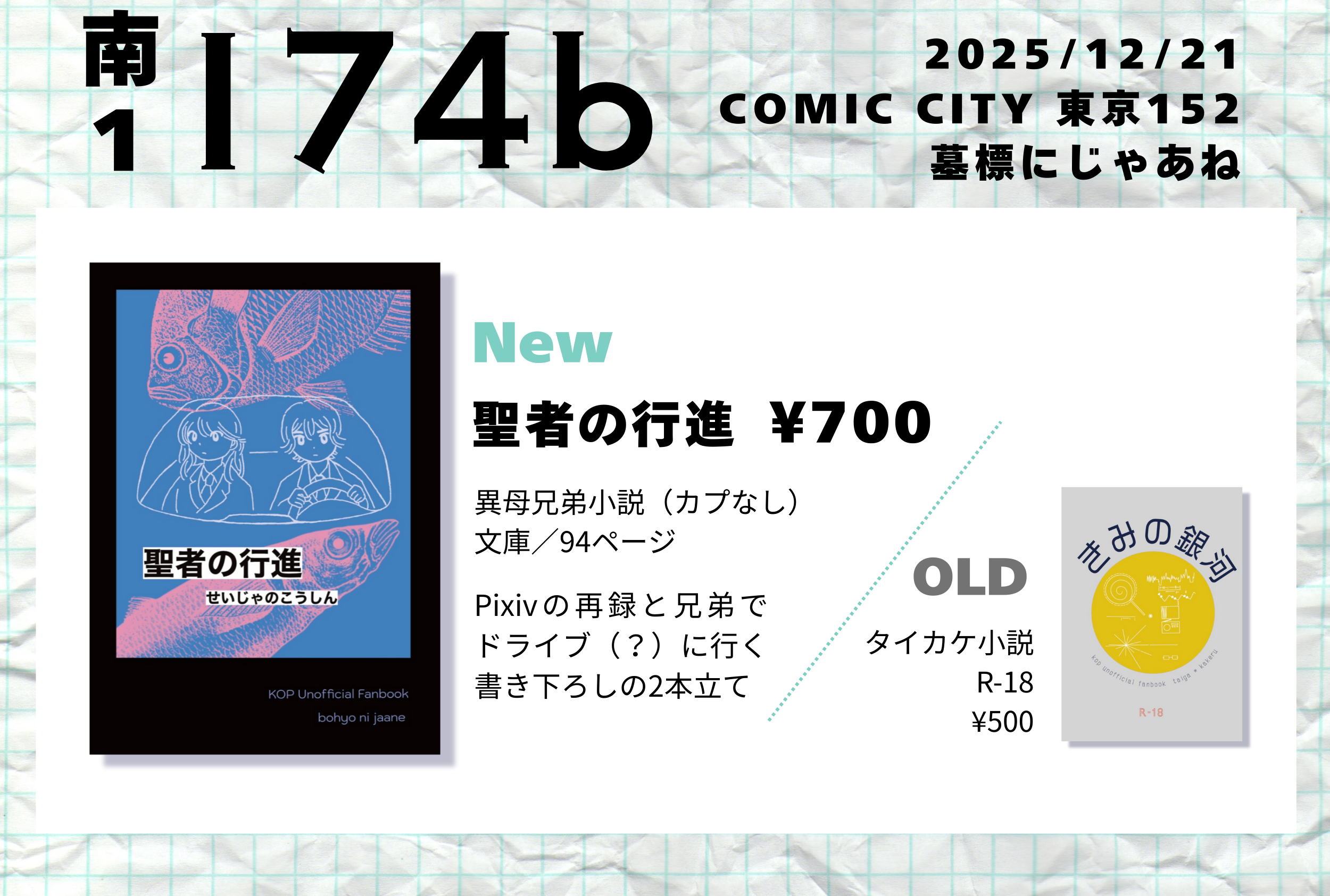 イベント、完!スペースにお立ち寄りいただいたみなさまありがとうございました。禁プリはこれで三回目の参加だったけど、異母兄弟は初だったのでドキドキしつつ、(またしても)前日入稿だったのですべてがバタバタしてるうちに通り過ぎて行ってしまったような気がする。今日は今日でカケル誕のお祝いをしてきて、この二日が濃厚すぎるので、静かにゆっくり噛み締めたいです…